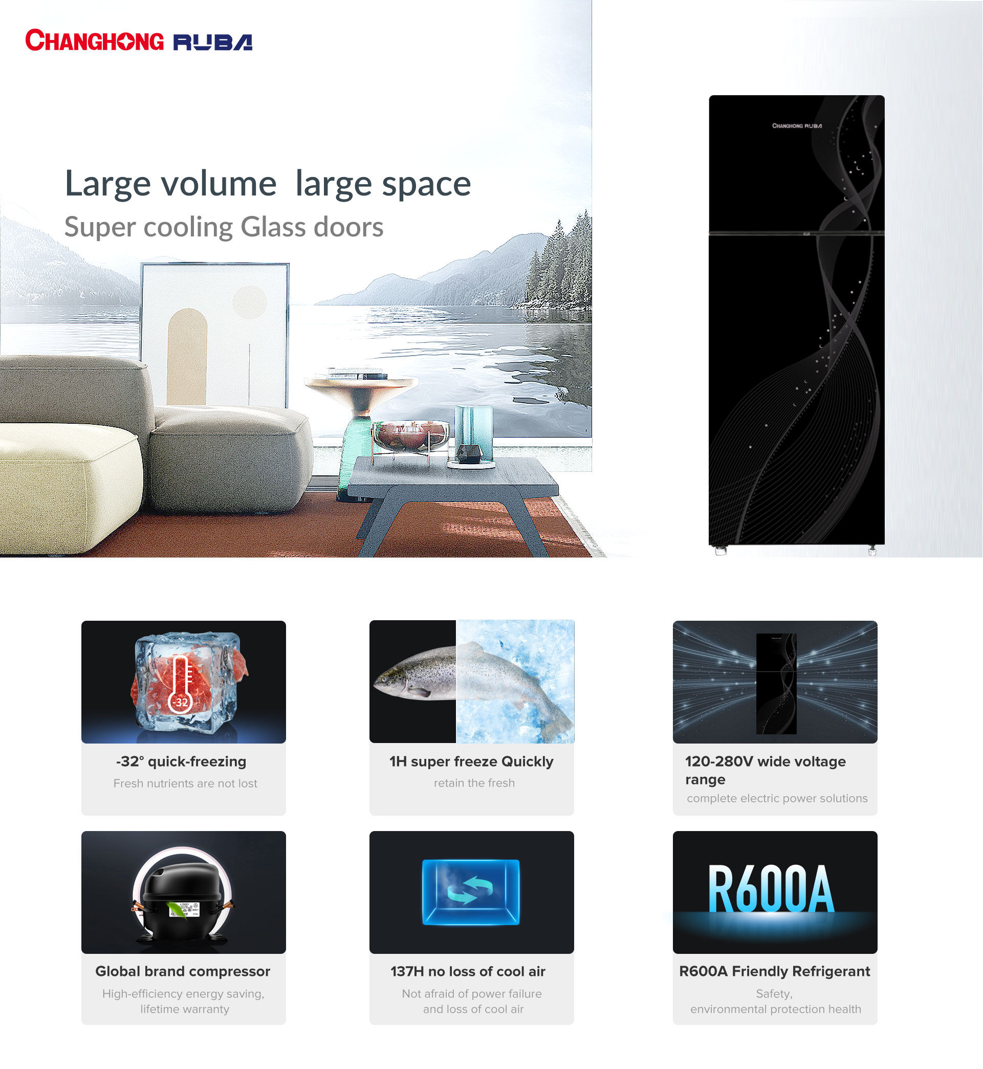 Changhong Ruba CHRDD238GKR Glass Refrigerator