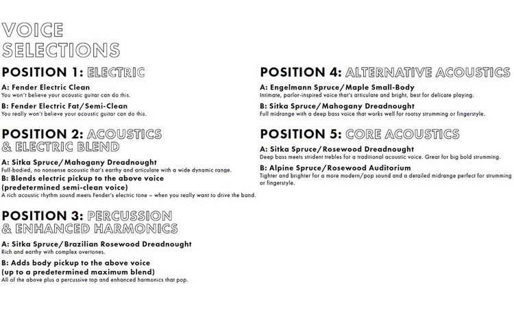 Strumming, fingerpicking, and lead work all require different sounds. The Acoustasonic Tele gives you access to 10 different voices via its 5-way blade and continuously selectable A/B mod control. Whether you’re after a big, boisterous dreadnought to fill solo space or a reduced-size parlor guitar to sit in a mix, it”s all at your fingertips with the Acoustasonic Tele from Fender. No pedals required.
