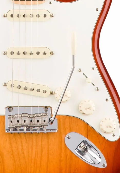 A Fender Strat wouldn't be a Fender Strat without the non-locking tremolo design that turned the world on its ear in the early 1950s. The American Professional Stratocaster boasts an updated take on that design that meets the needs of today's players. Its 2-point construction makes action adjustments a breeze, while providing plenty of stability. And the pop-in arm mechanism is extremely convenient, holds the tremolo arm from having too much play, and allows you to adjust the tension on the arm.