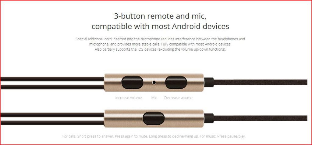 * Original XIAOMI Piston Earphones Headphones Headset with Remote & Mic for Mi4 MI3 MI2S MI2A Phones * Excellent sound quality and super clear sound * Beryllium alloy for faster, better and clearer sound * Aluminum alloy sound chamber design,brings you better bass performance * New balance double damping system helps to give a more pure sound effects * Made of high quality material,strain and not easy to break * With answer/end key located in the earphone for your phone * Three pairs of music earplugs,S/M/L,different size for you to use * Perfect for you to listen to the music in your cell phone, answer calling etc * Makes your hands free while driving or on the road