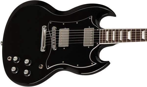 Immortalized by Santana at Woodstock and smashed onstage by Townshend, the Gibson SG is a rock icon. Gibson’s Nashville-made SG Standard is the real deal, arming you with a pair of toneful humbuckers, a rounded-profile neck, and a silky Plek’d rosewood fretboard with action that’s almost nonexistent. The SG’s lightweight mahogany body delivers great sustain and no pain, even if you play all night. And the nitro finish looks and feels luscious while enhancing the tone of this legendary solidbody electric guitar. Own your piece of rock history: the Gibson SG Standard.